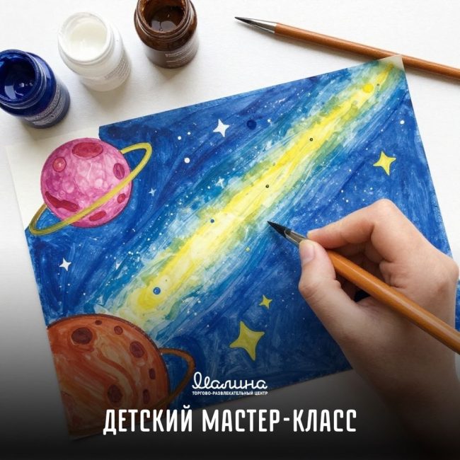 Детский мастер-класс на этой неделе! Посвятим это воскресенье Дню космонавтики и отправимся в творческое путешествие по космосу. Будем рисовать акварелью планеты, звезды и галактики — каждый ребенок создаст свою уникальную вселенную. Когда: 12 апреля (вс) в 12:00 Где: ТРЦ «Малина» (2 этаж, зона отдыха) Все материалы предоставляются, мастер-класс бесплатный. Ждем вас!
